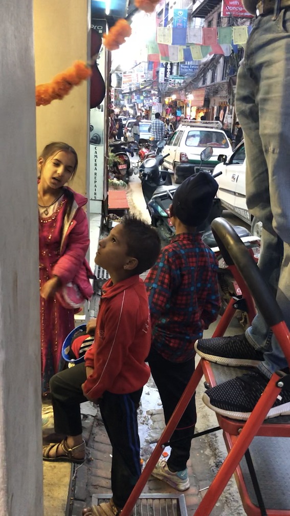 毎年11月ごろネパールではティハールというヒンドゥー教のお祭りが行われます。首都カトマンドゥ一番の繁華街タメル地区に行くと、お祭りに使う色粉を売る出店があちこちにできます。稼ぎ時なので子どもが店番をしていることが多いです。いつもにぎやかな街ですが、お祭りの間は特別に人手が多いようです。