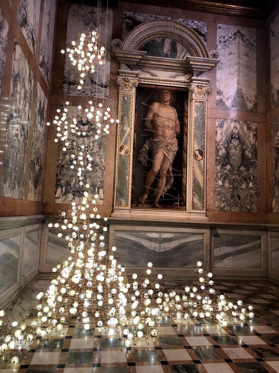 画像は美術館の中に現代作家のインスタレーションをコラボさせたような展示になっていて、有名な聖セバスティアヌスを描いたルネサンス絵画も新鮮な感じです。