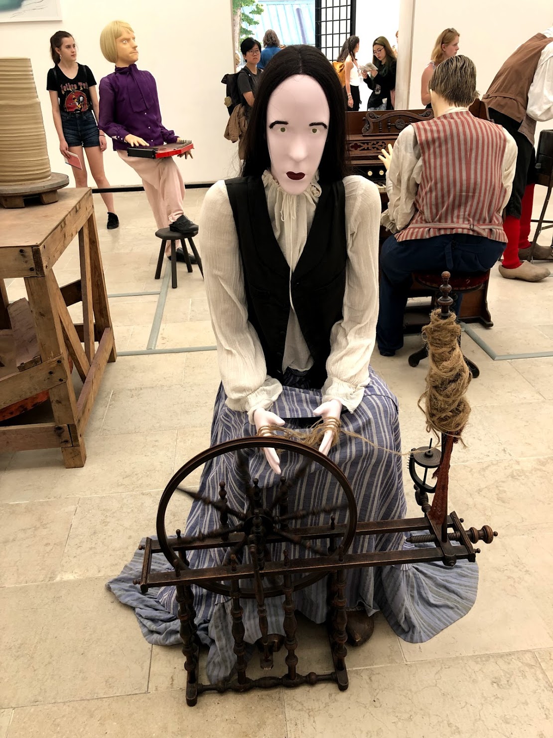 翌日はもう一つの会場ジャルディーニに行きました。昔からある建物を改築したり、新しく建設したりした各国のパビリオンに国の代表作家の作品を展示するシステムです。画像は今回受賞した作家の作品で、いろいろな人形が変な動きをしたり音を出したりします。