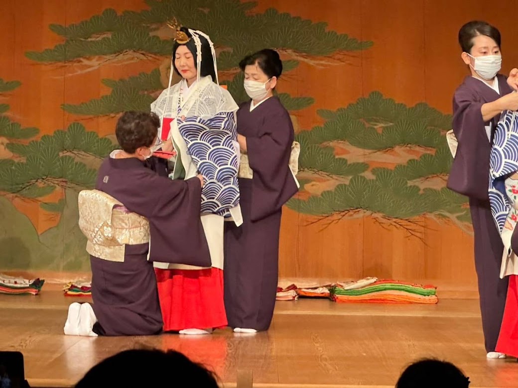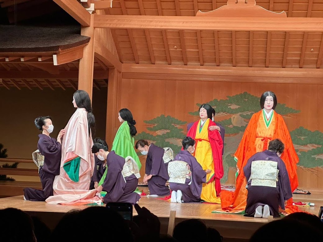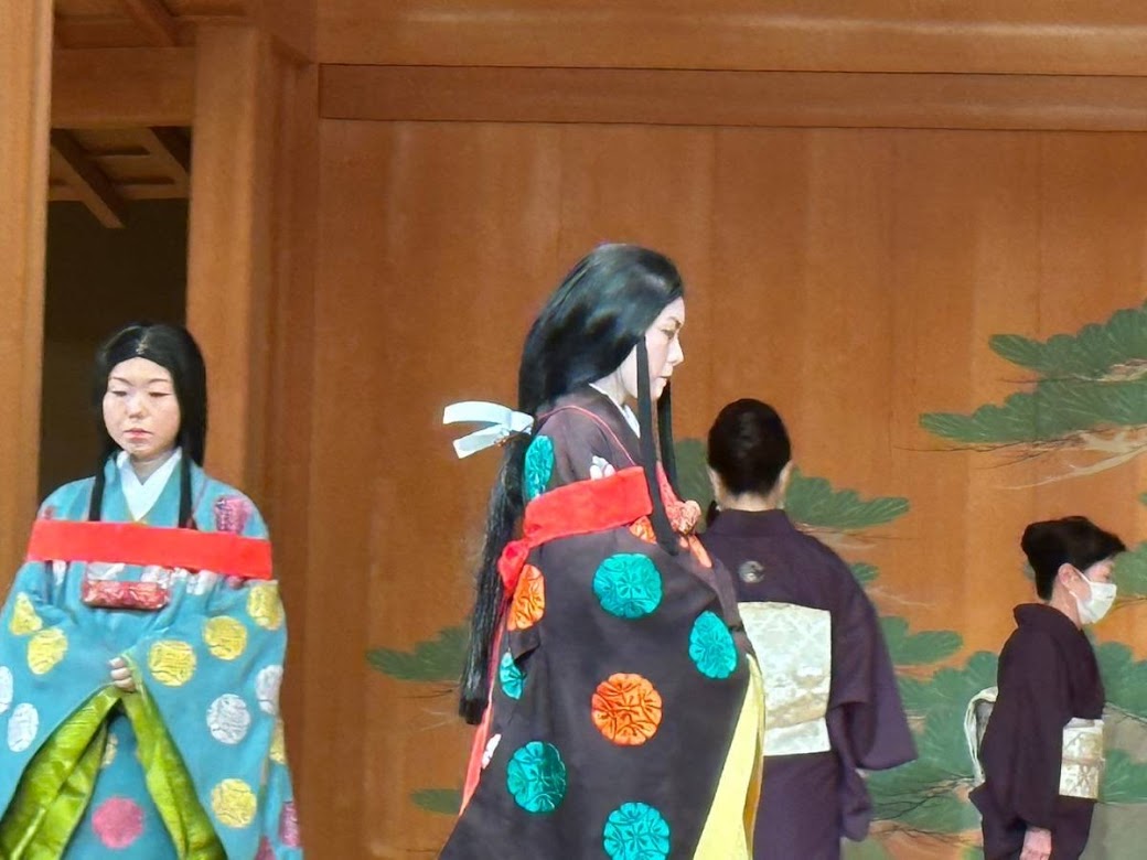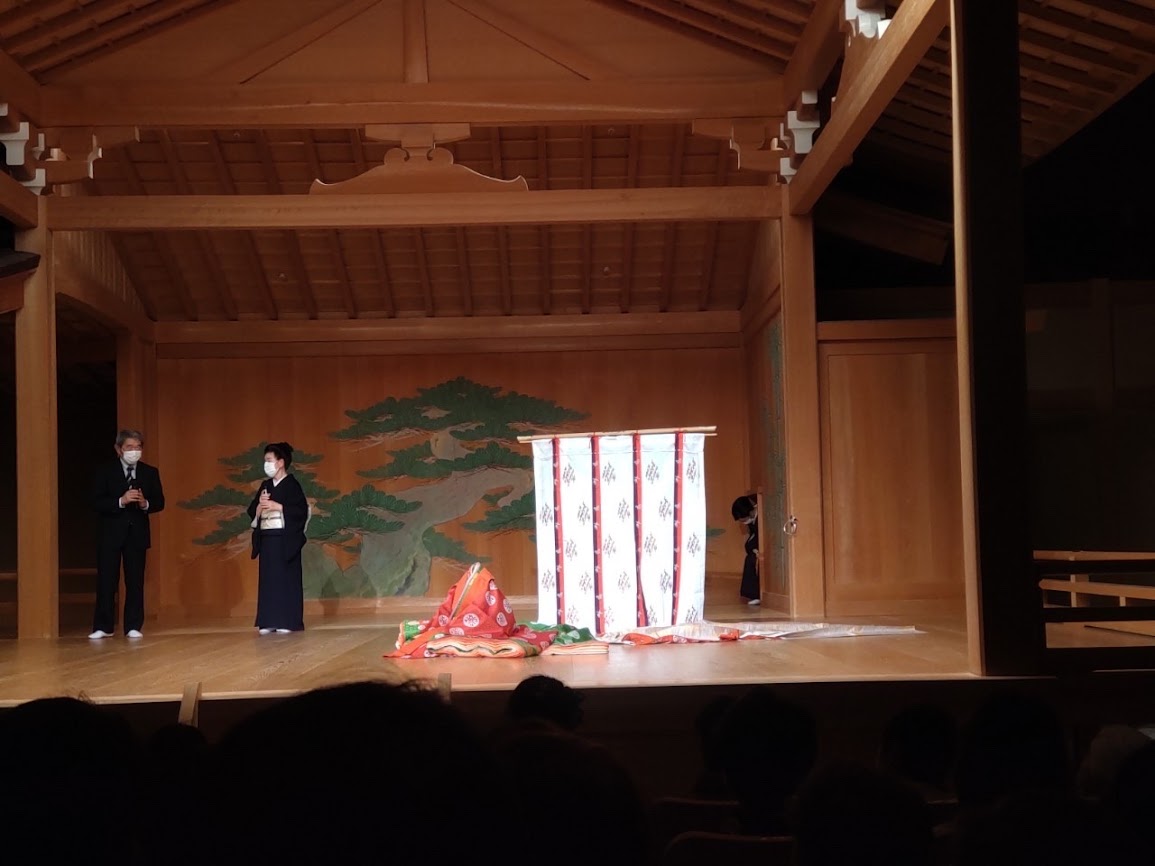 先日名古屋城の隣にある能楽堂で、十二単の着付け講演会があるというので、観に行ってきました。