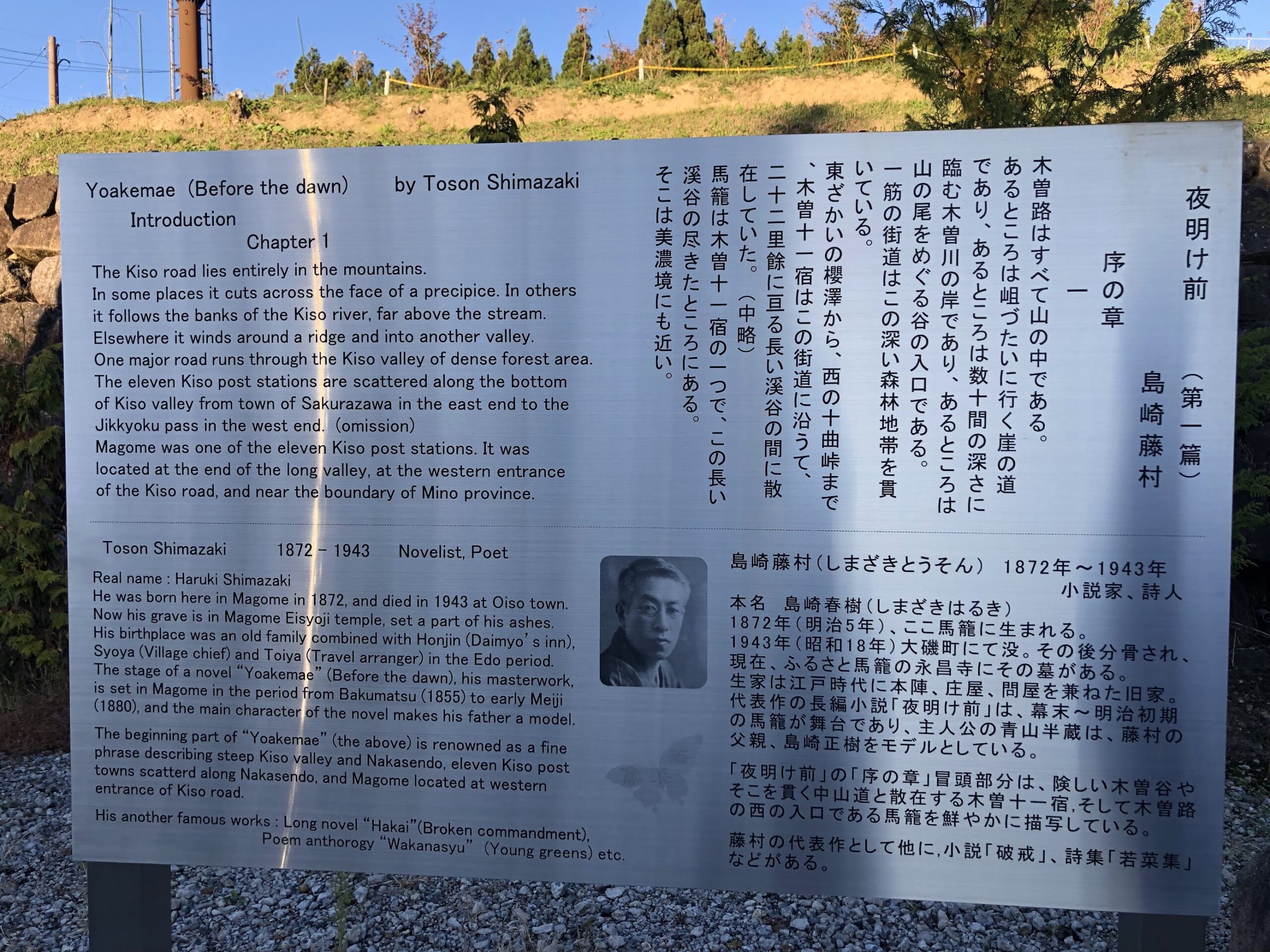 途中にこの地の出身の島崎藤村記念館がありましたが、すでに閉まっていました。