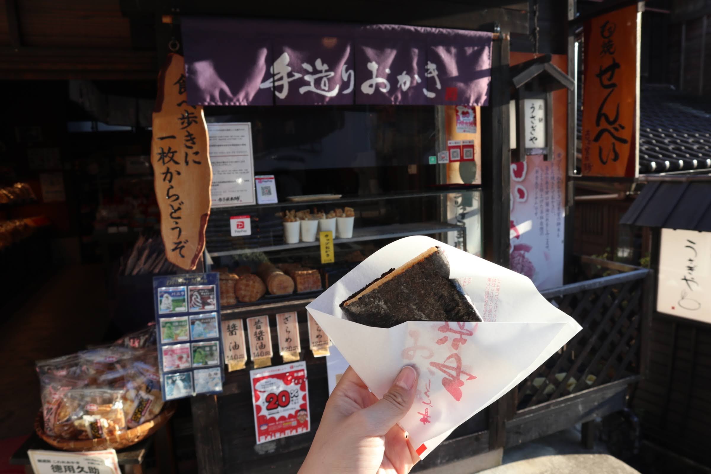 もう間もなく店じまいになりそうな店に飛び込んでは、おせんべいや五平餅などを買い、つまみながら歩きました。