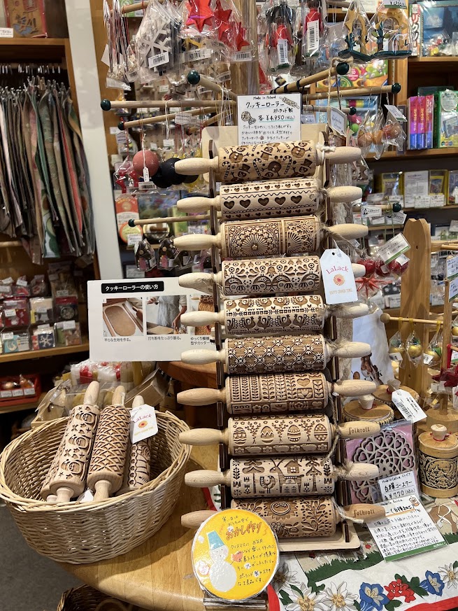 今回見つけたときに「見つけた!これは絶対買いだ。」と思ったのが、木製のクッキーマーカーで、ローラー式になっています。昨年チェコのプラハ城を訪れた際、城下町のお土産店に展示されていたものとほぼ同じです。その時は、欲しいと思ったのですが、荷物量に制限があったことと、ユーロがものすごく高かったのできっと高いだろうと思ってお店にも入らず諦めました。以後思い出しては、買えばよかったと後悔していたので、こんなところで出会えて幸せです。ポーランド製のオーク材でできています。早速プラハに一緒に行っていた娘にラインを送ったら「最高じゃん!」というスタンプで一緒に喜んでくれました。